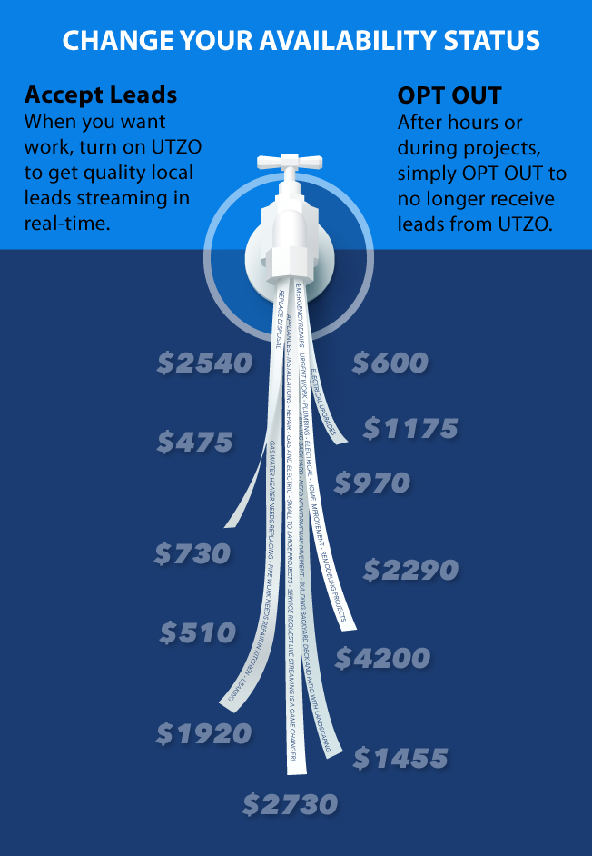 With UTZO you only pay for a lead once you accept it and then You’re the only one who is going to that service location.