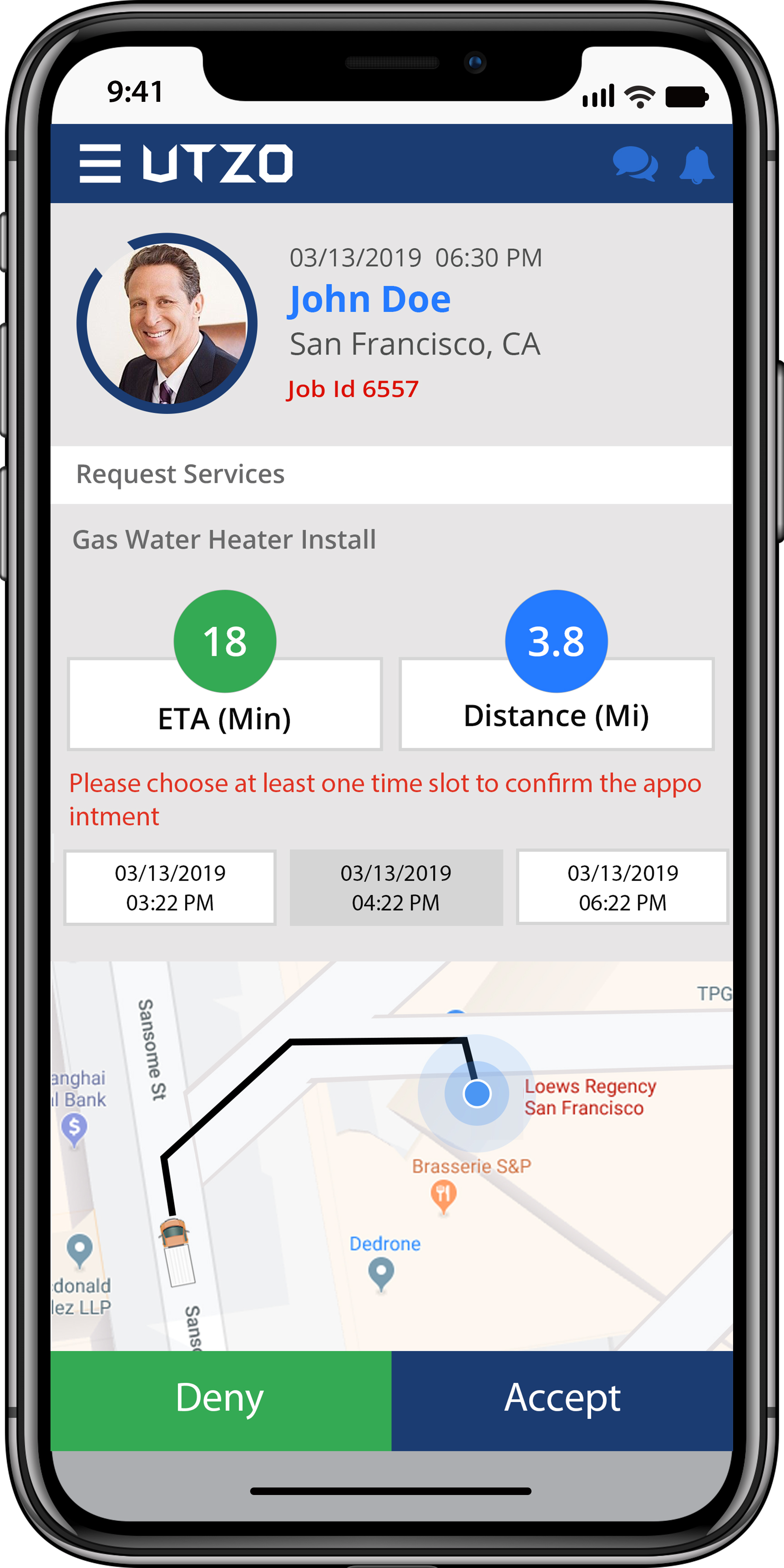 The UTZO Dispatch System’s Lead Notification features combined with ONE CLICK DISPATCH technologies allow you to reduce your operational costs getting your pros on-site to matched, well qualified homeowners. UTZO eliminates the cost of booking calls. Homeowner requests automatically go to the company dashboard and pro APP for easy assignment. UTZO makes it easy to dispatch leads as they roll in - it’s a great system!